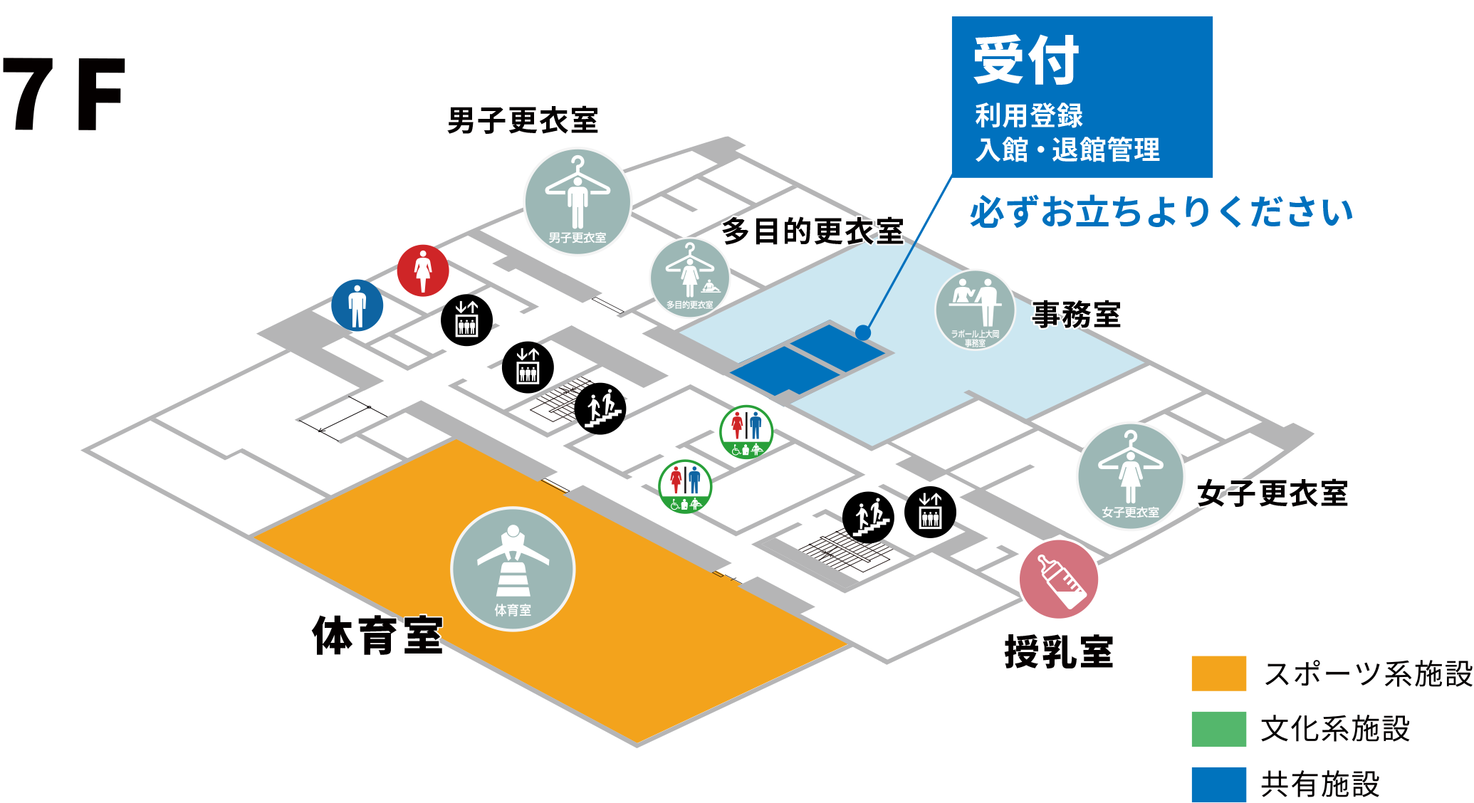 エレベーターで7階へ上がってください。